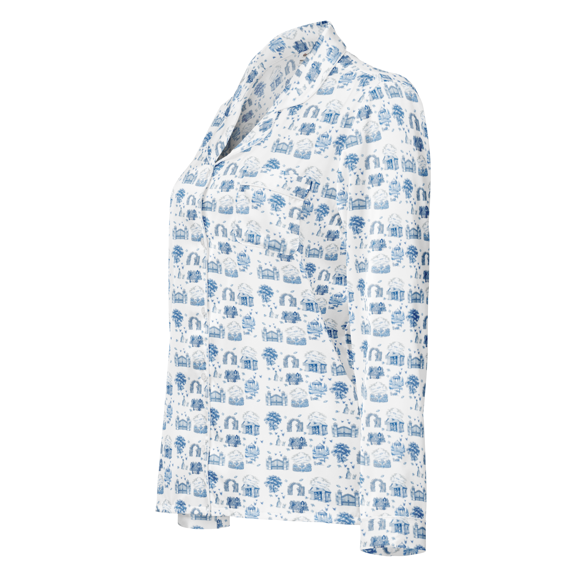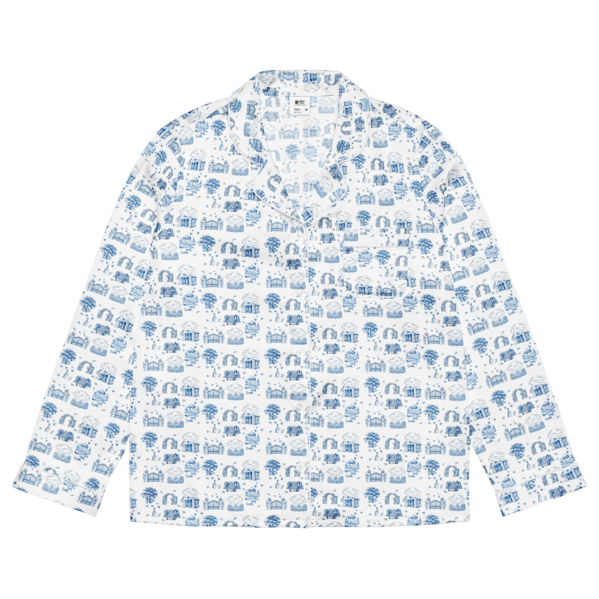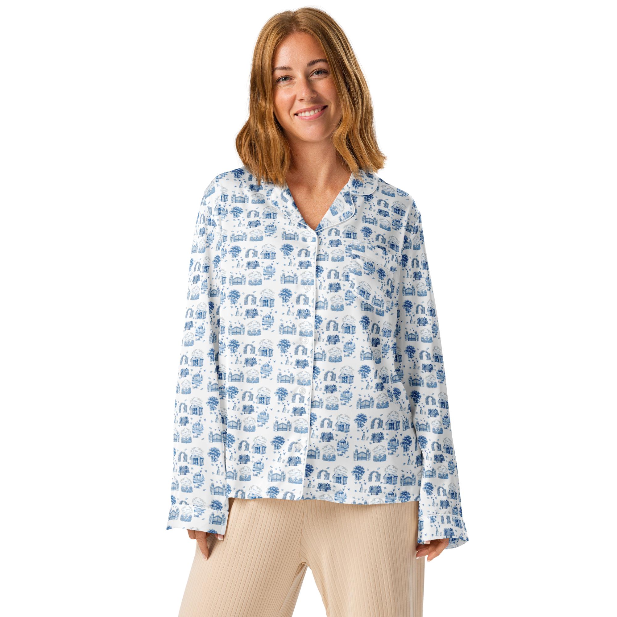 This silky pajama top is ideal for a cozy day when you want to feel both comfortable and elegant. It features a relaxed fit, chest pocket, and elegant piping detail.