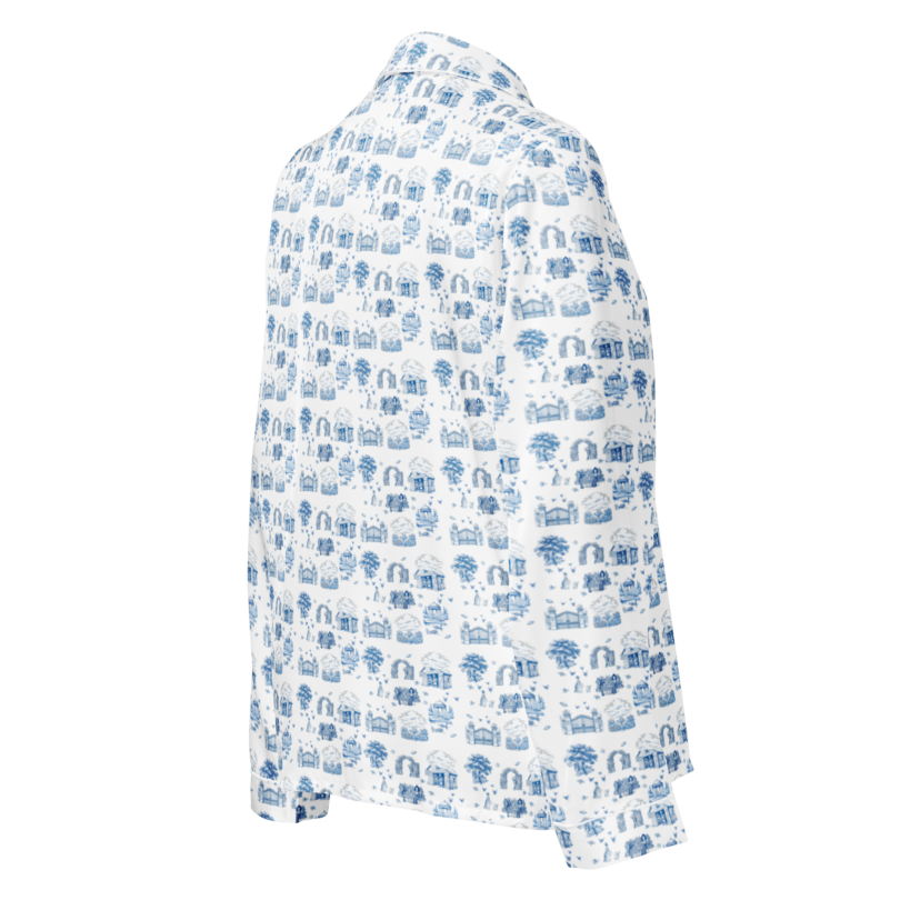 • Decorative piping around the collar, chest pocket, and cuffs